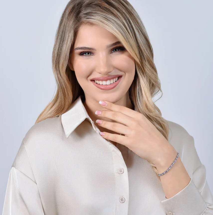 Bracciale Luca Barra Donna Acciaio Tennis Cristalli Viola e Bianchi Alternati _BK2638