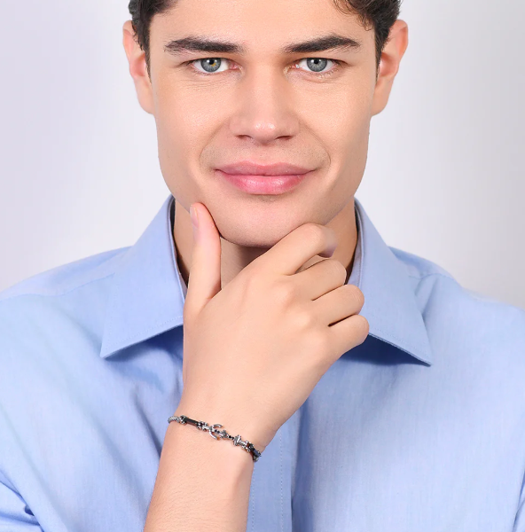 Bracciale Luca Barra Uomo Acciaio Centrale Ancora Ceramica Nera _BA1791
