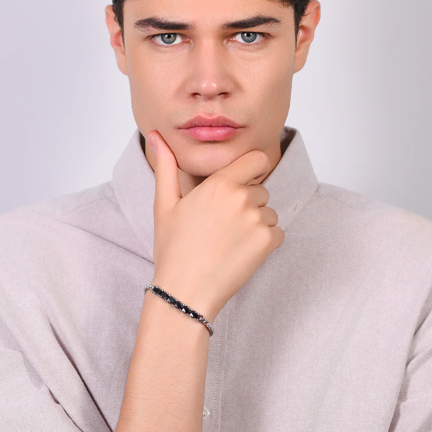 Bracciale Uomo in acciaio con elementi centrali in ceramica nera. Lunghezza 19+3 cm. Spessore catena: 4 mm. Misura elemento: 50 x 6 mm. Gli elementi centrali in ceramica nera conferiscono al bracciale un tocco di eleganza minimalista, mentre la struttura in acciaio aggiunge una sensazione di solidità e raffinatezza. Questo bracciale per uomo offre una combinazione di durata e design contemporaneo.