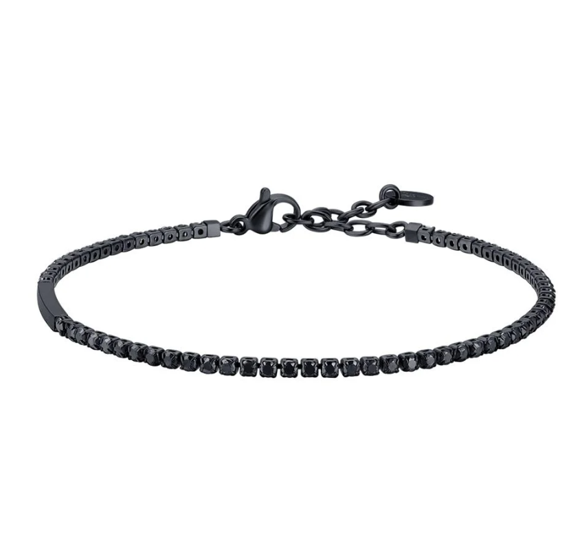 Bracciale Luca Barra Uomo Acciaio Nero Tennis Zirconi Neri _BA1887