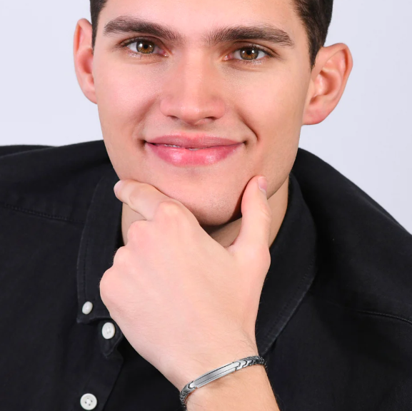 Bracciale Uomo in acciaio con piastra in acciaio. Lunghezza: 21,5 cm. Spessore catena: 6 x 3 mm. Misura piastra: 34 x 6 mm. Il bracciale da uomo in acciaio con una piastra in acciaio è un accessorio dal design essenziale ma versatile. La piastra in acciaio rappresenta la bellezza nella semplicità. Questo tipo di bracciale può essere indossato con una vasta gamma di abiti e stili, aggiungendo un tocco di eleganza senza essere troppo vistoso.