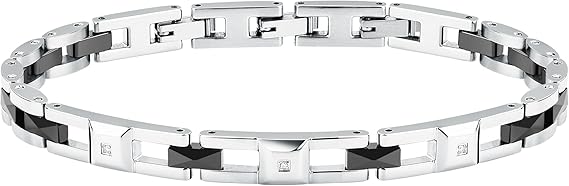 BRACCIALE SECTOR CERAMIC - SAFR45 - Genere : Uomo, Misura: 18.5|3.5, Colore: Silver, Nero, Sector experience: Jewels, Materiale: Acciaio, Peso: 25,400 gr, Pietra: DIAMANTE, Colore pietra: Gh, Carati pietra: 0,0135, Purezza Diamanti: SI3, Certificato di autenticità: Sì, Confezione: Originale Sector