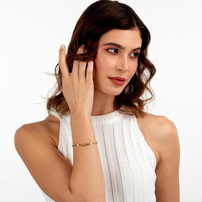 Bracciale da donna di misura 19 cm. Dispone di una pratica chiusura a moschettone.