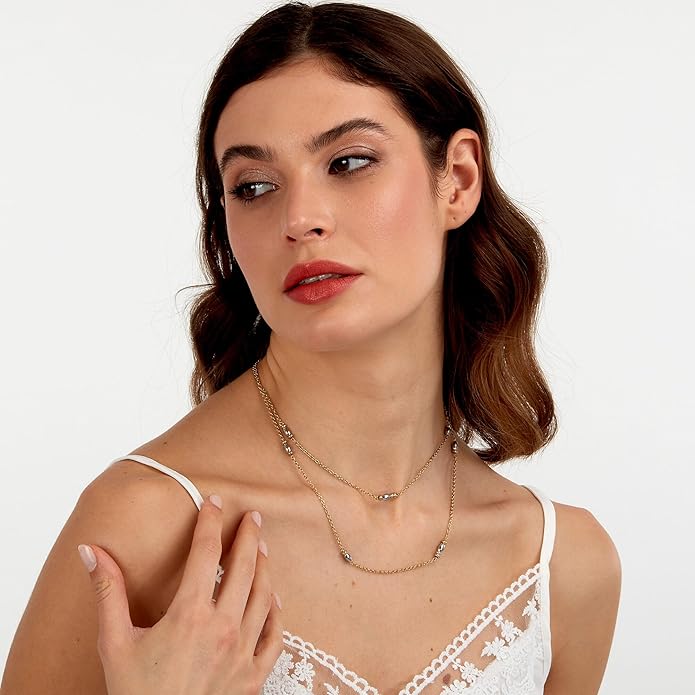 Collana lunga da donna di misura 90 cm. Dispone di una pratica chiusura a moschettone. Stile ed eleganza in un unico gioiello: regalo perfetto per ogni occasione!