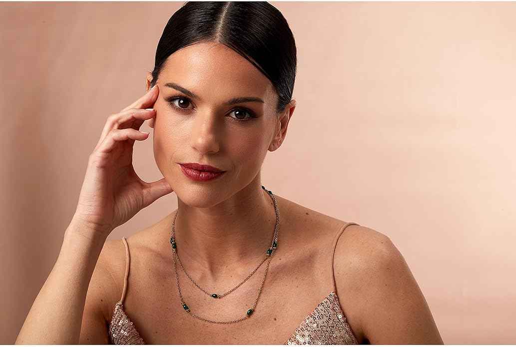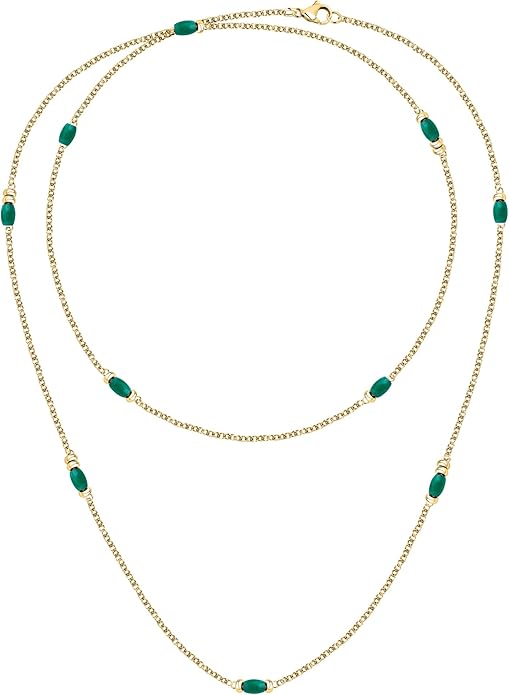 Collana lunga da donna di misura 90 cm. Dispone di una pratica chiusura a moschettone. Stile ed eleganza in un unico gioiello: regalo perfetto per ogni occasione!