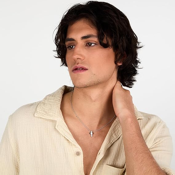 Il gioiello misura 45+5 cm e dispone di una pratica chiusura a moschettone. La collana presenta un ciondolo con croce