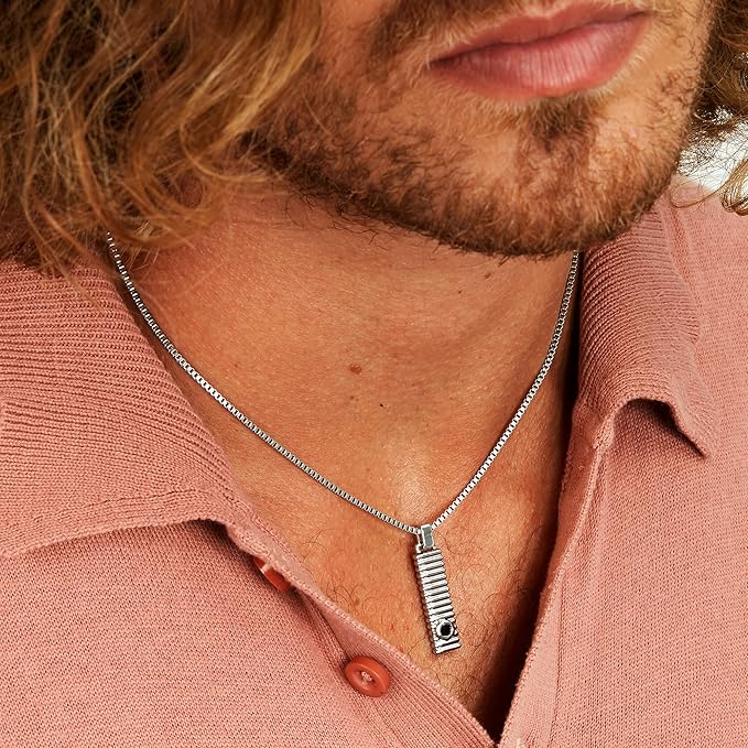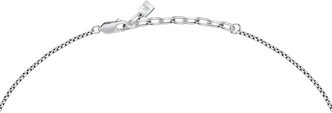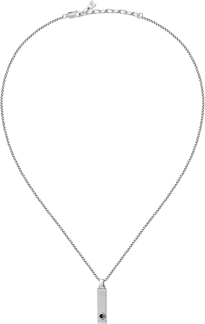 Il gioiello in acciaio misura 45 + 5 cm ed è caratterizzato da un ciondolo rettangolare con un cristallo nero centrale. La chiusura del gioiello moschettone si distingue per essere pratica e sicura. È un'ottima idea regalo da fare in diverse occasioni.