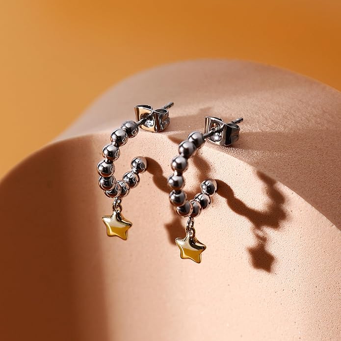 - Materiali: Orecchini donna in acciaio, pvd oro