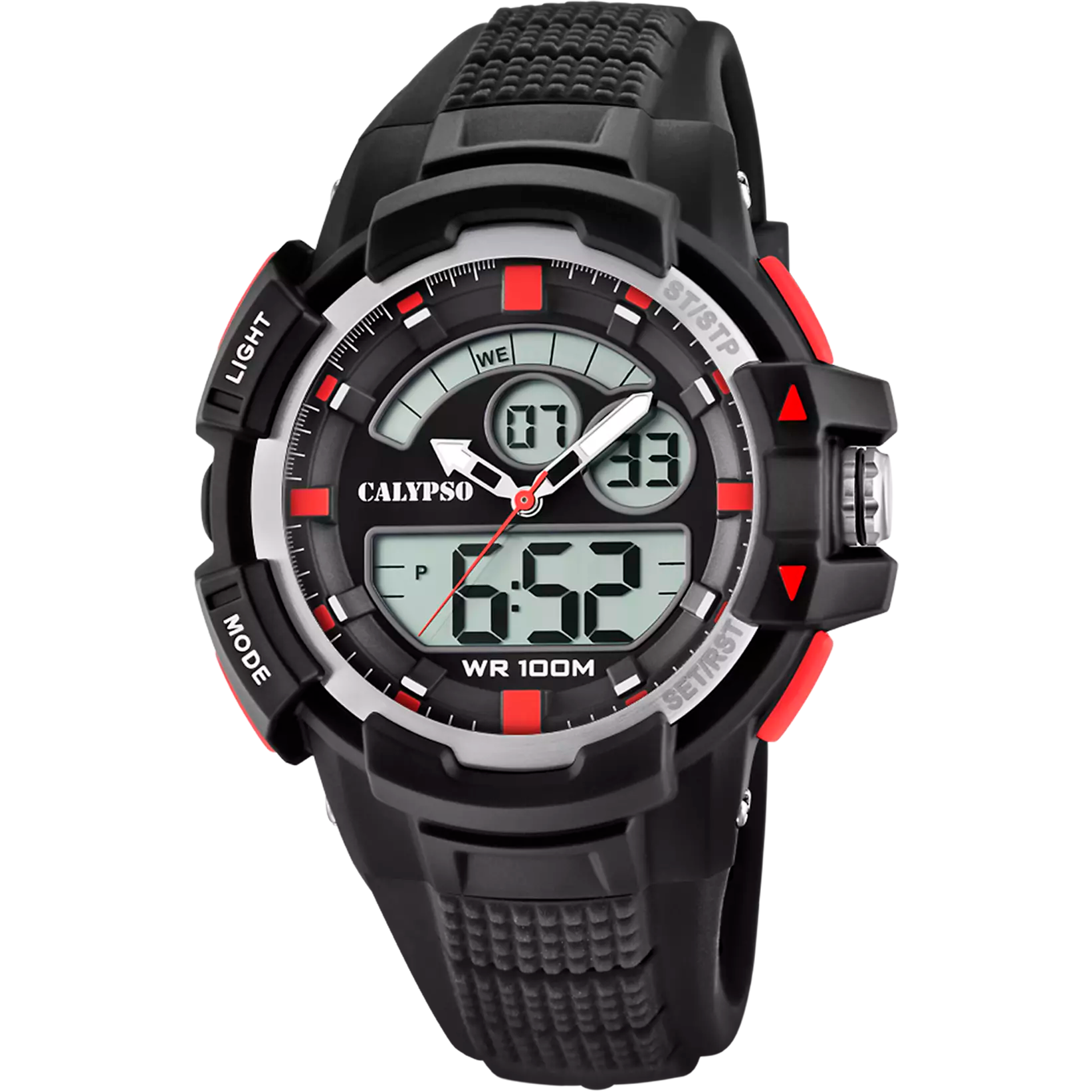 La collezione di orologi digitali Calypso Flash Time si distingue per il suo design giovane, sportivo e resistente, pensato per chi cerca funzionalità e stile in egual misura. Questi modelli combinano colori vivaci con un'estetica robusta, ideale per le attività quotidiane e all'aperto.